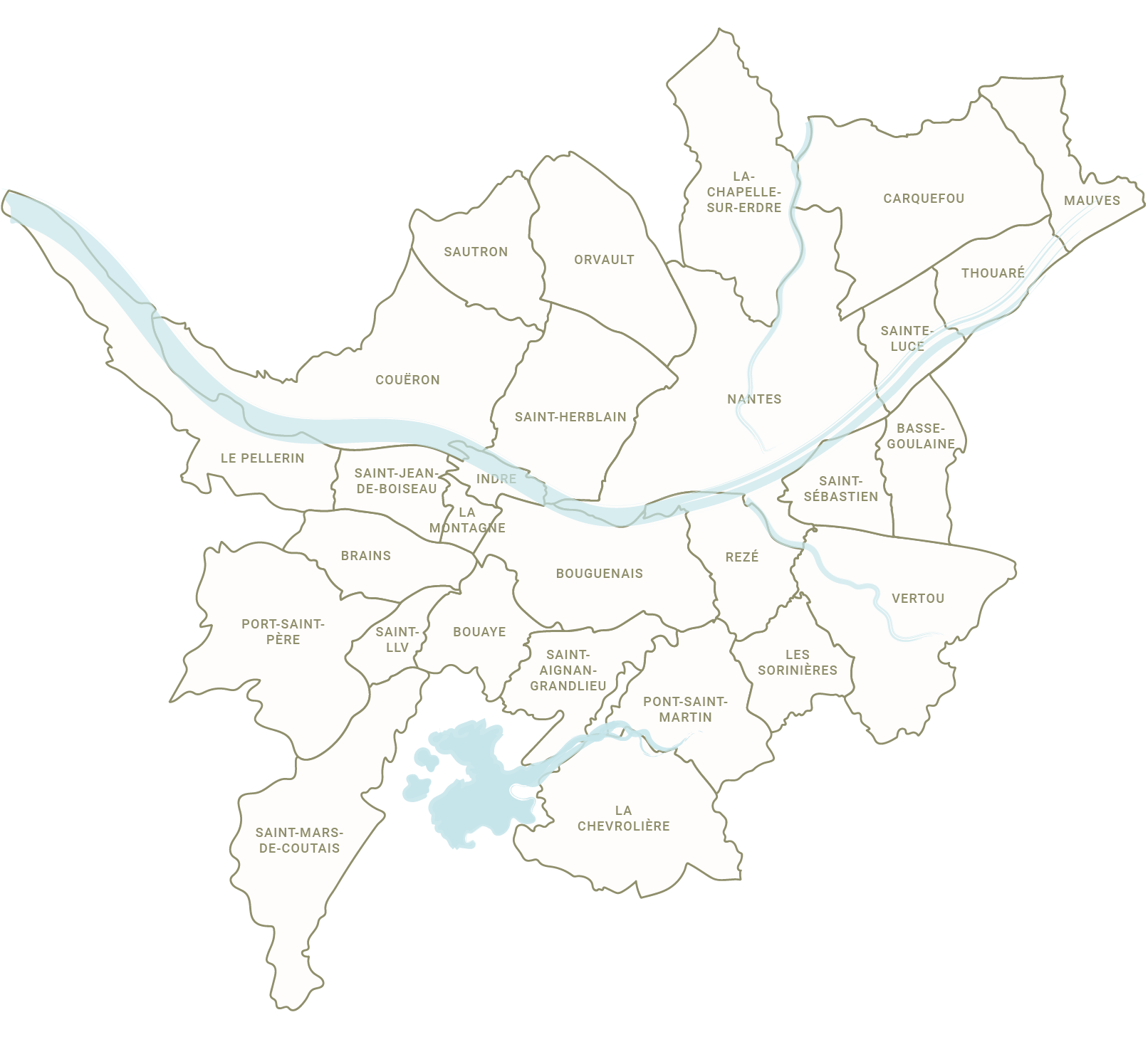 et Pont-Saint-Martin), et plus largement la région Sud-Loire, autour de Saint-Aignan-Grandlieu, Saint-Philbert-de-Grand-Lieu, La Chevrolière… ainsi que les communes voisines.